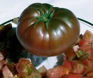 Ukrainian Purple This is one of my favorites as I concentrated on more paste tomatoes this year and Ukrainian Purple came in right at the top for not only taste but also size and fabulous color. It’s about 6 oz, smooth and elongated plum shaped. The shoulders are dark “black” blending into reddish purple below and the meat is simply gorgeous in puree, sauces and salads. Very productive, too! 75 days. Indeterminate